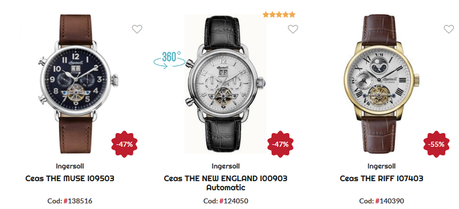 Pentru a gasi colectiile de ceasuri, nu mai este nevoie sa pierdeti timpul cutreierand prin toate magazinele de specialitate. Azi, puteti gasi toate ceasurile de firma prin o simpla navigare pe site. In gama unica veti gasi doar ceasuri originale si de calitate. Oferim o varietate mare de ceasuri barbatesti de la cele mai cunoscute firme. Daca doriti un produs de calitate, nu ezitati sa ne alegeti.